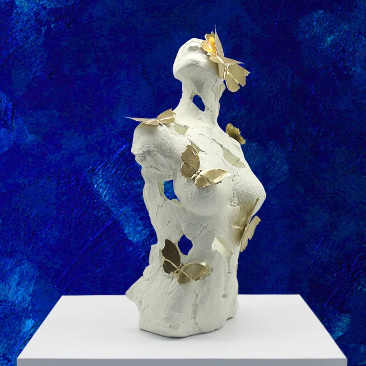 A refined 16-inch decorative sculpture crafted in resin and accented with metal butterflies, bringing an artistic and luxurious touch to any space.