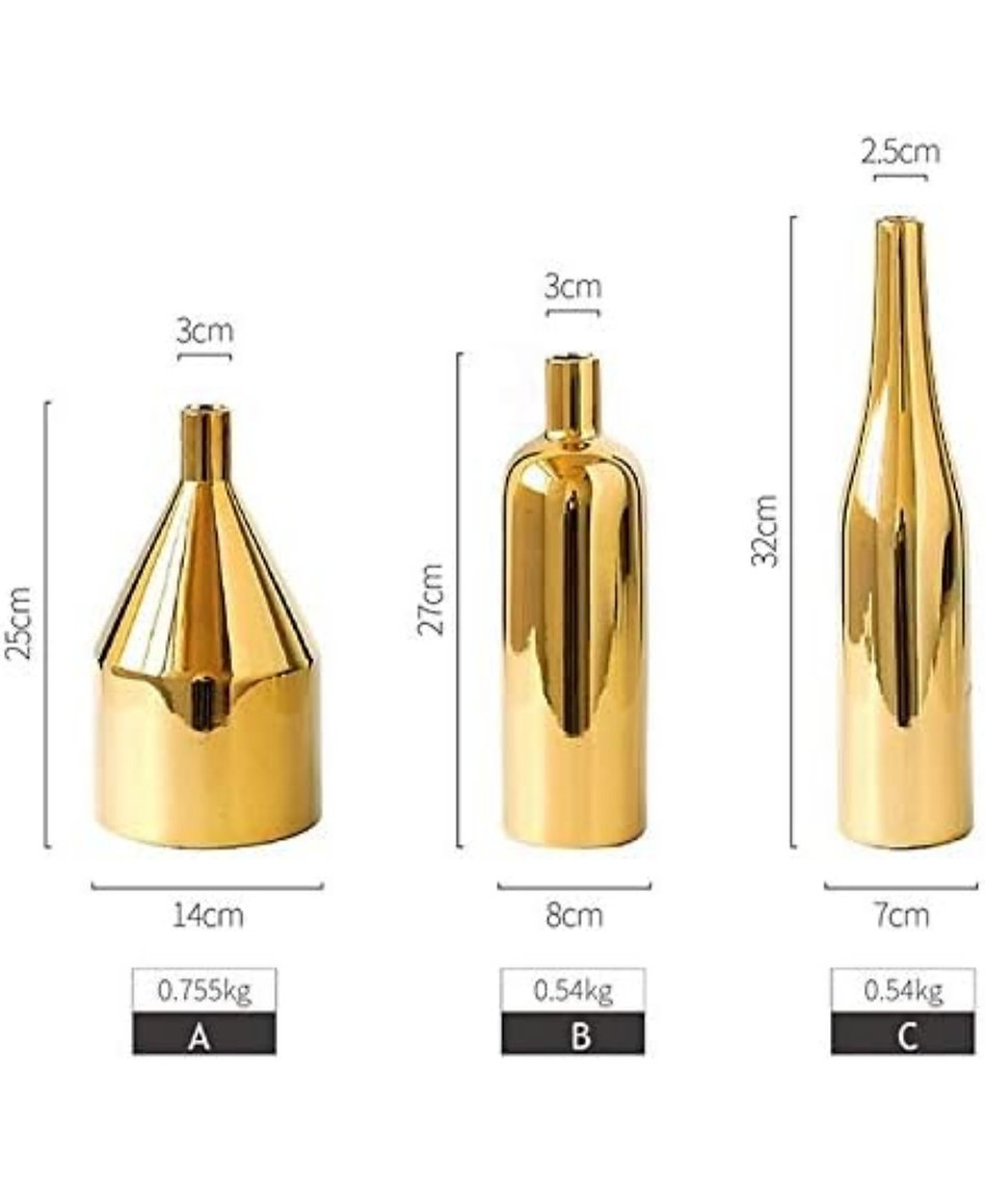Introducing our Chromatic bottles, a unique and eye-catching addition to any home decor. These bottles come in a set of three, each in a different size and shape, adding dimension and visual interest to any space. Their vibrant and shimmering metallic finish makes them perfect for adding a pop of color to a shelf, mantle, or table. Whether you use them to hold flowers, display on their own, or simply as a decorative accent, these bottles are sure to bring a touch of modern elegance to any room. Crafted with high-quality materials, these Chromatic bottles are not only stylish, but also durable and long-lasting.