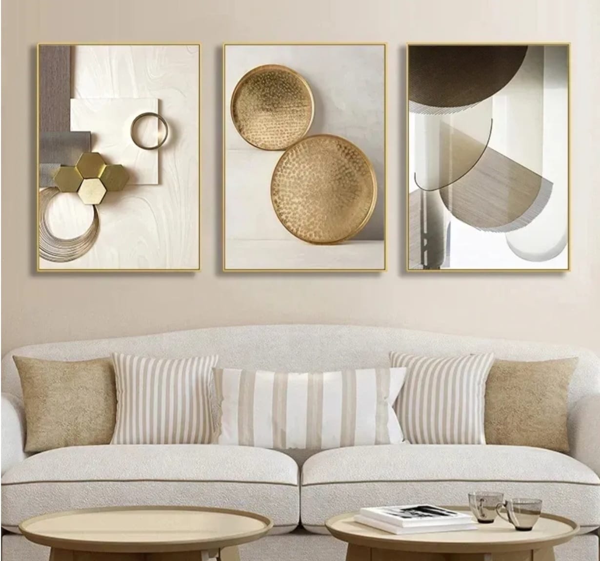 Experience the Golden Dimension. This exquisite collection of three paintings doesn’t decorate a wall, it transforms it. Conceived for those with a refined taste for contemporary design and timeless luxury, this triptych uses gold not as a color, but as a statement of elegance and depth.