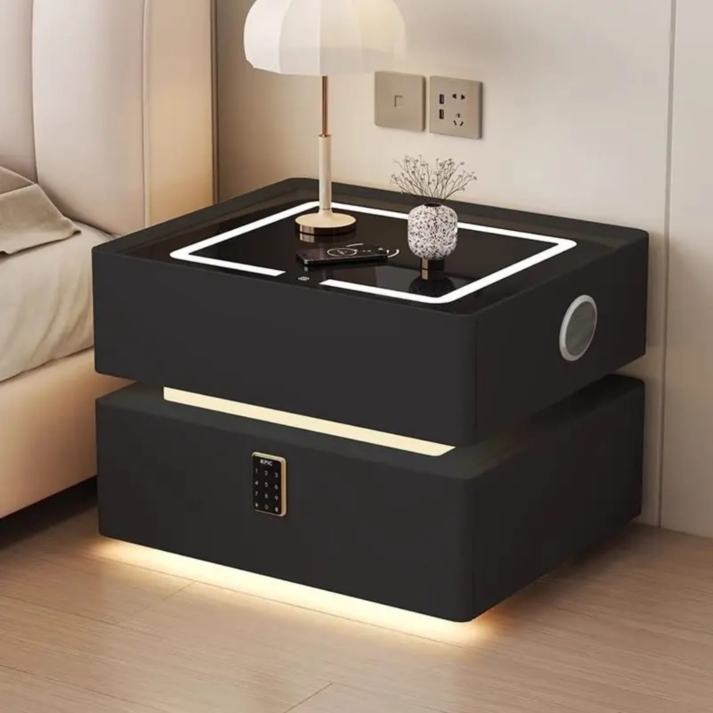 Modern and simple furniture. Nightstand with charging sockets and USB ports.