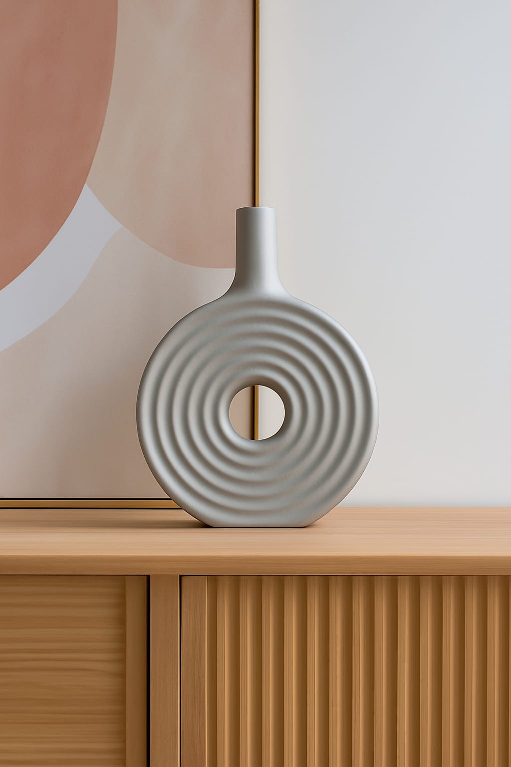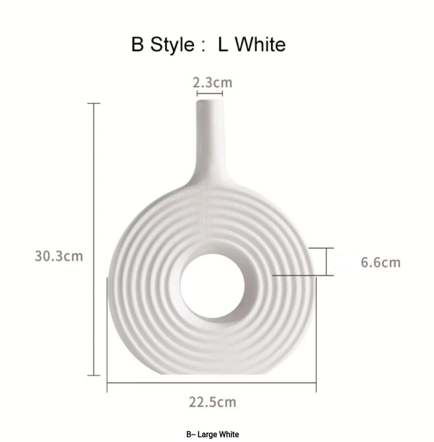 Nordic vintage porcelain vase with round lines, creative floral decoration, luxury matte matte black and white. Artistic desktop ornament. Living room, flower cabinet, and table decoration.